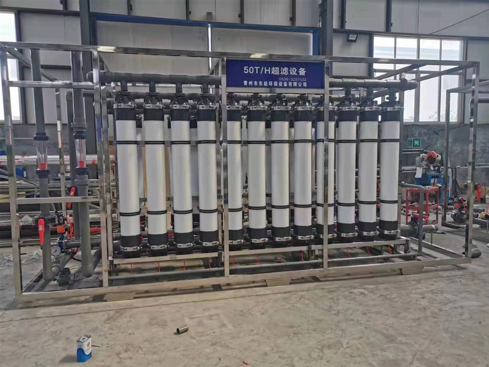 超濾,是以壓力為推動力,利用超濾膜不同孔徑分離出液體中的雜質、細菌、膠體、懸浮物、蛋白質等物質,溶解于水中的分子類物質得以保留,如鈣、鎂、硅、金屬離子等而獲取成品水的系統裝置,膜過濾孔徑一般為0.01μm。